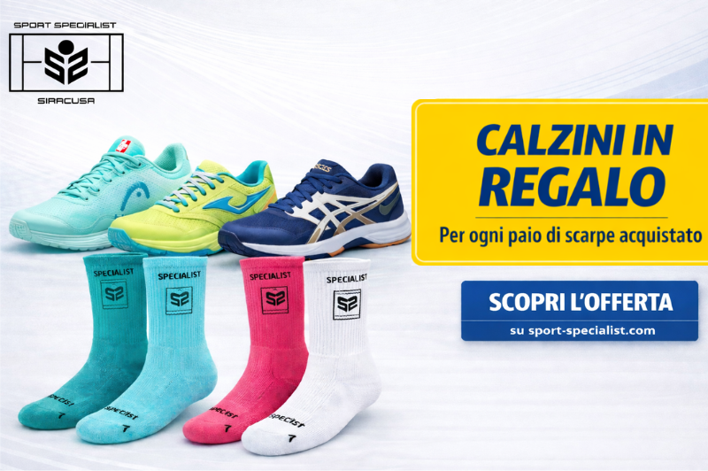 Per ogni paio di scarpe che hai caricato nel carrello un paio di "Socks Sport Specialist" in OMAGGIO.